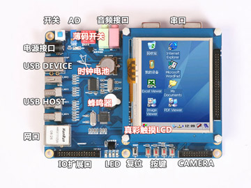 • 备注:独有的硬件选择启动系统方案:开发板为Linux和Wince双系统,可直接通过拨码开关进行硬件选择启动的操作系统。这样操作更加方便,也可使初学者朋友深入掌握硬件切换操作系统的方法。